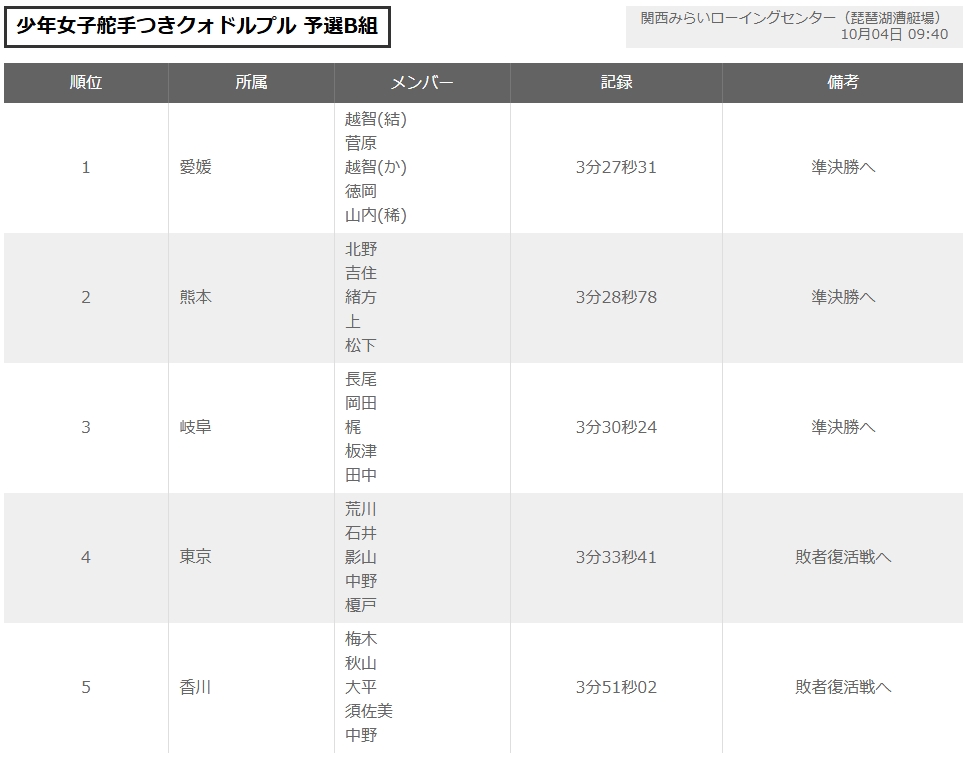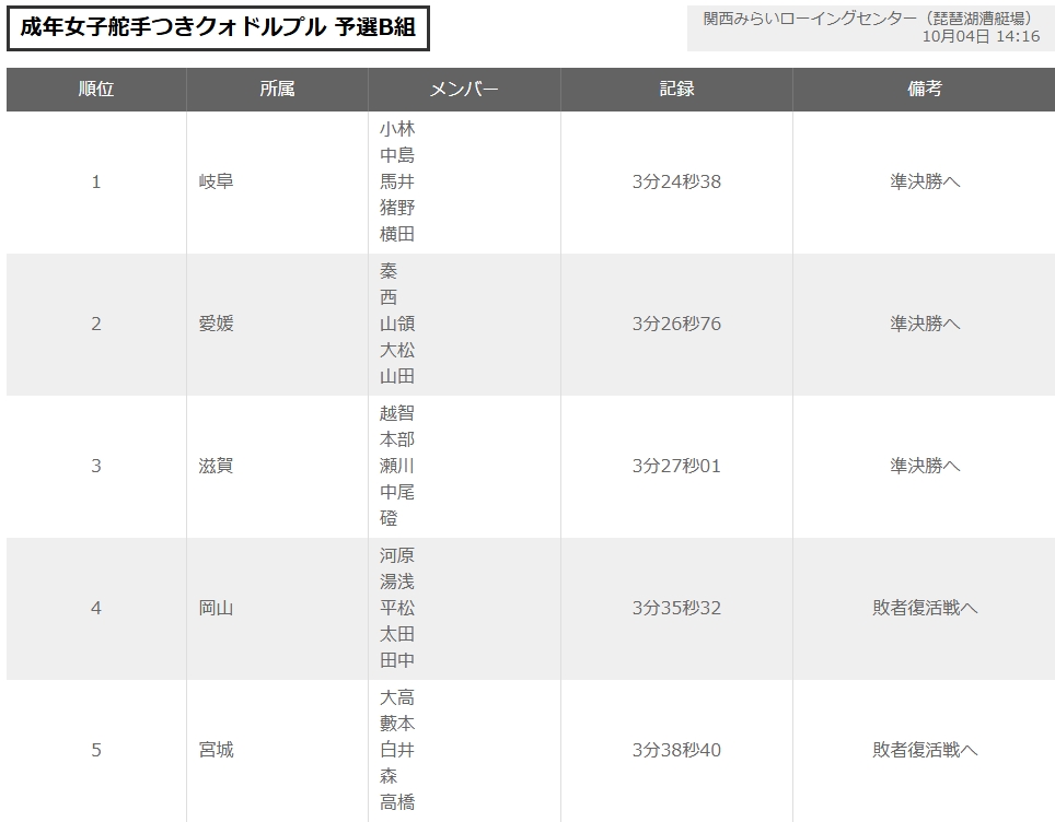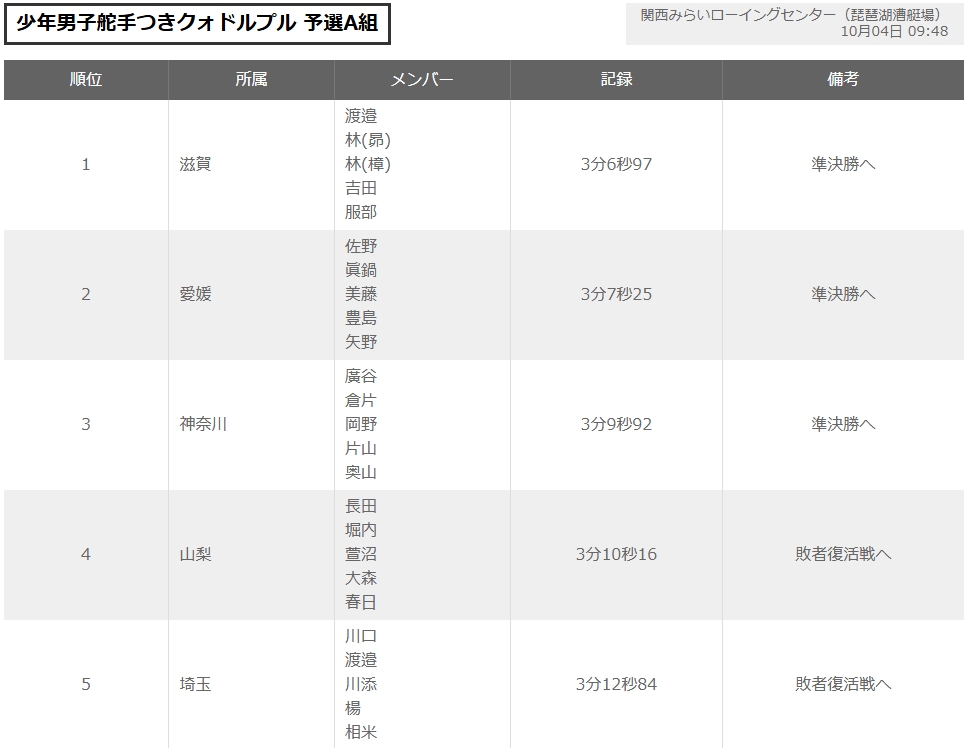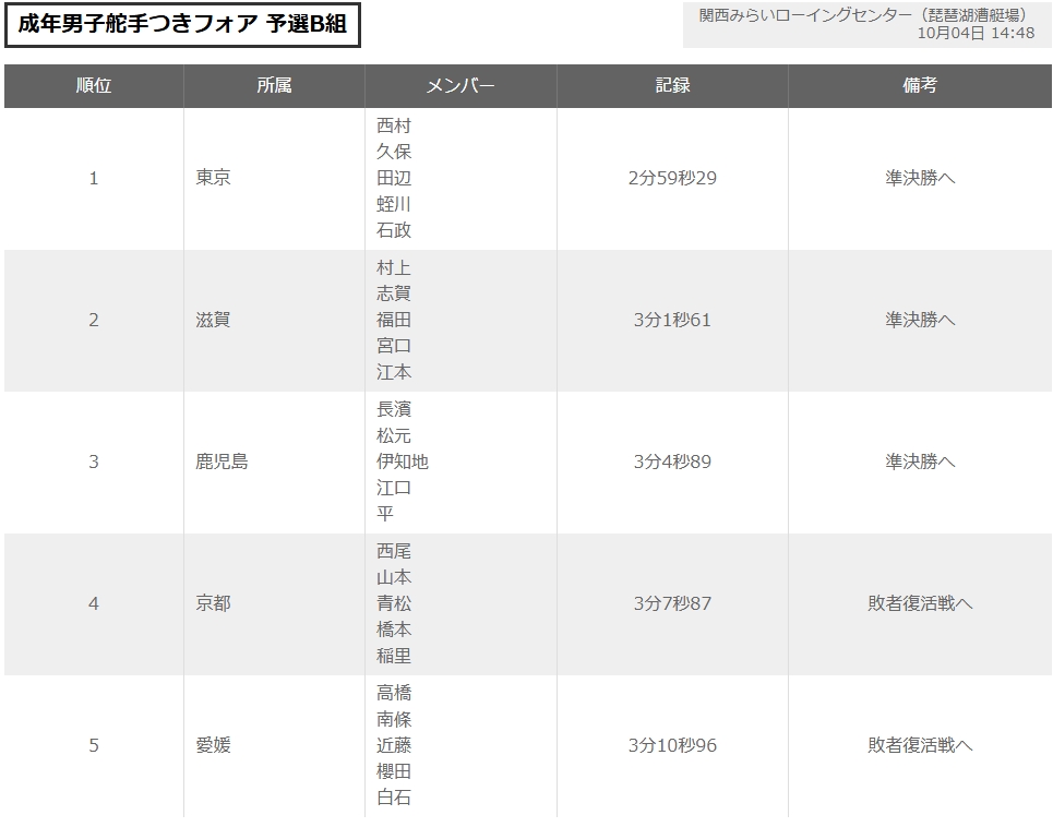 男子舵手付きクォドルプル 予選2位 準決勝へ