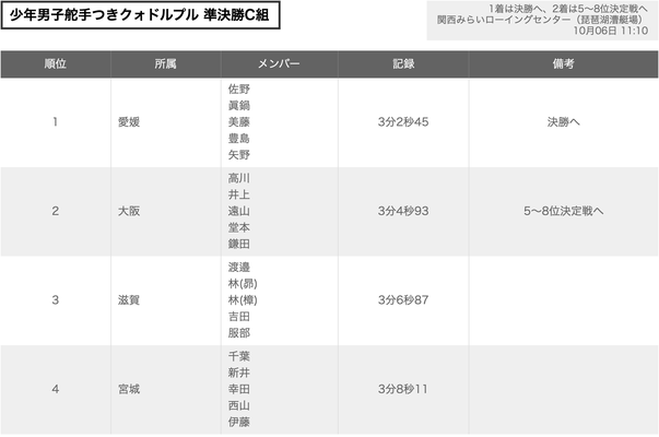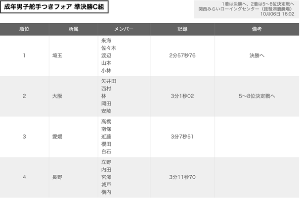 男子舵手付きクォドルプル 準決勝1位 決勝へ