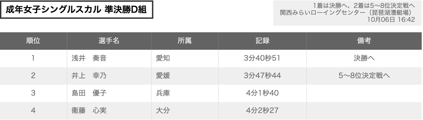 女子シングルスカル 井上選手 準決勝2位 5〜8位決定戦へ