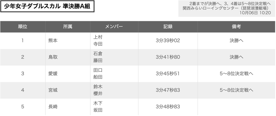 女子ダブルスカル 準決勝3位 5〜8位決定戦へ
