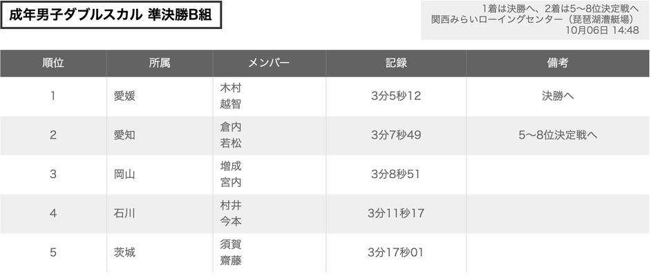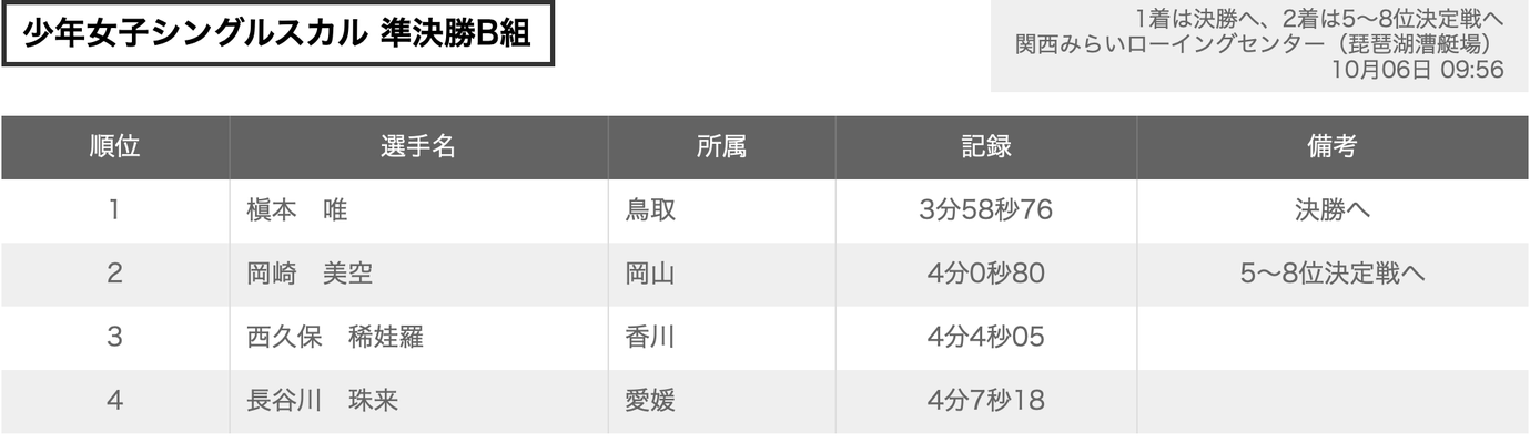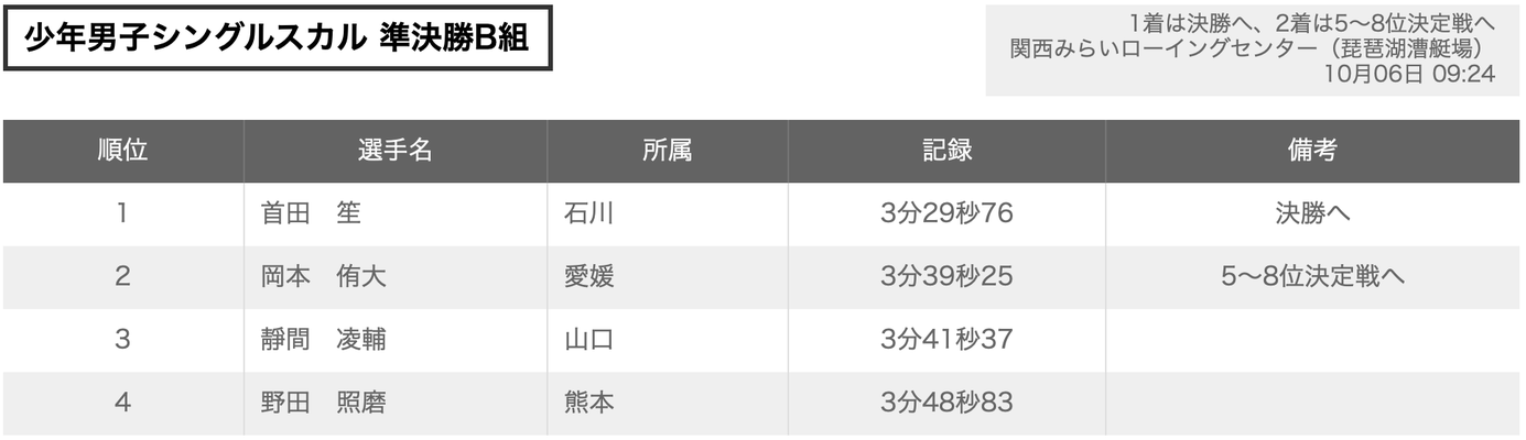 男子シングルスカル 川上選手 準決勝1位 決勝へ
